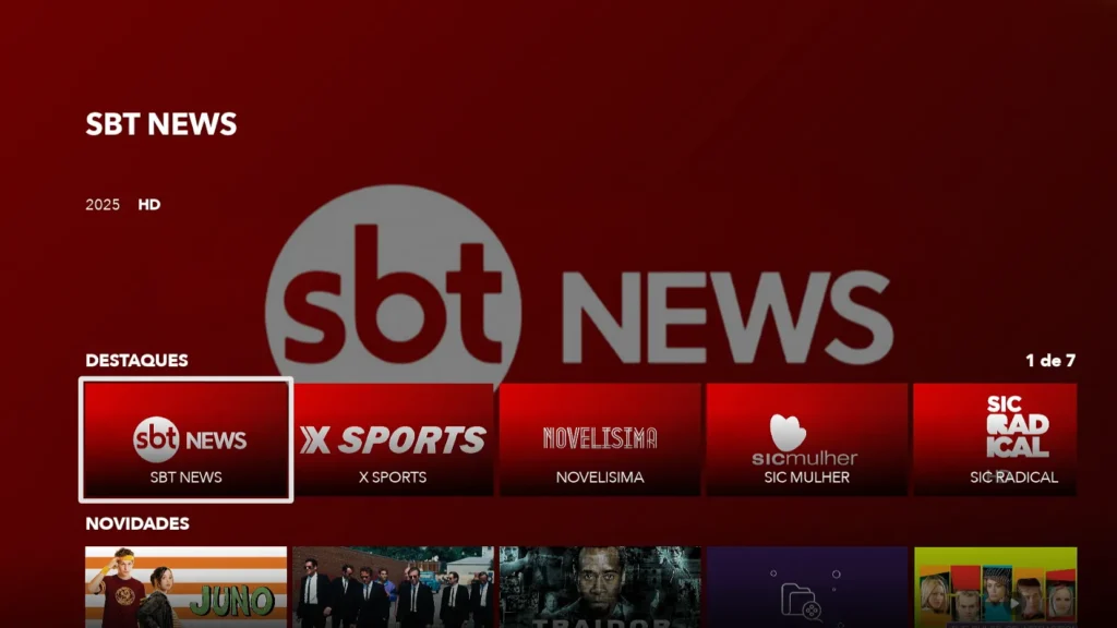 Essa novidade já existia em versões internacionais e agora está disponível no Brasil. Dentro da aba de aplicativos, você encontra a opção de Guia de TV ao Vivo, que dá acesso a dezenas de canais gratuitos.